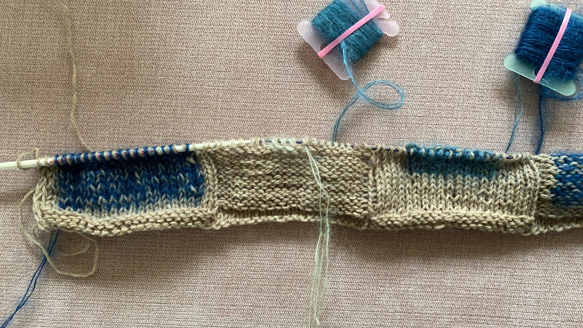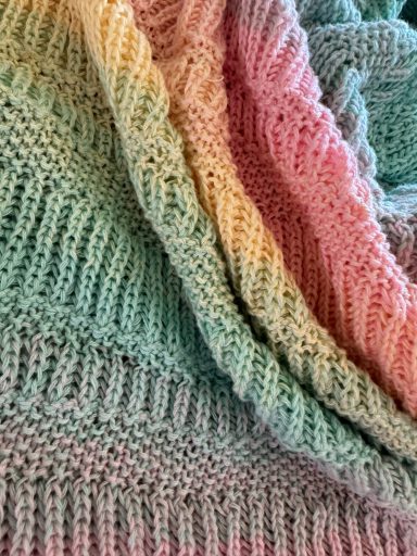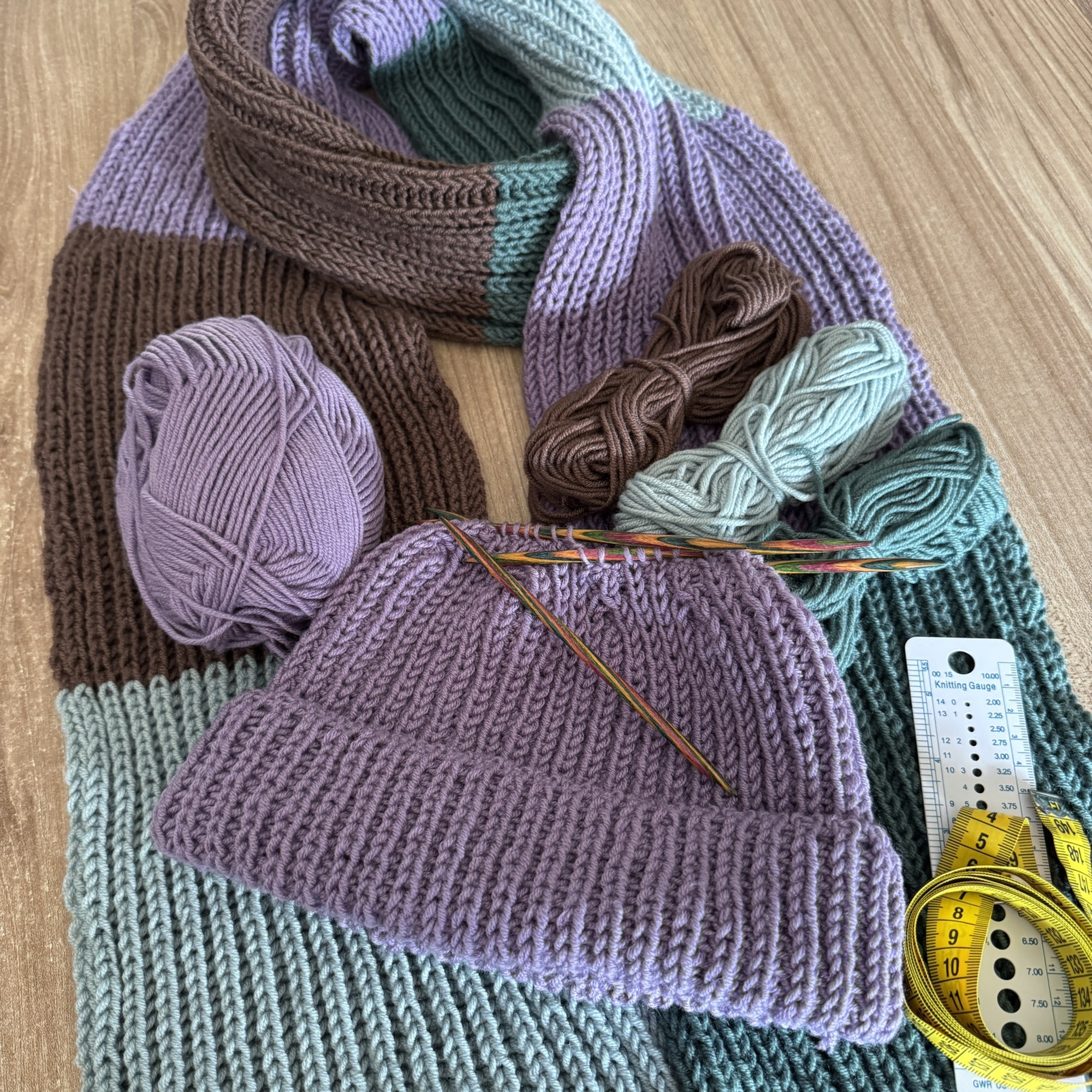 nach der Anleitung von Chrisberlin gestrickt. Tolles abwechslungsreiches Projekt: Von Glatt Rechts über einfaches Rippenmuster ins Patent.