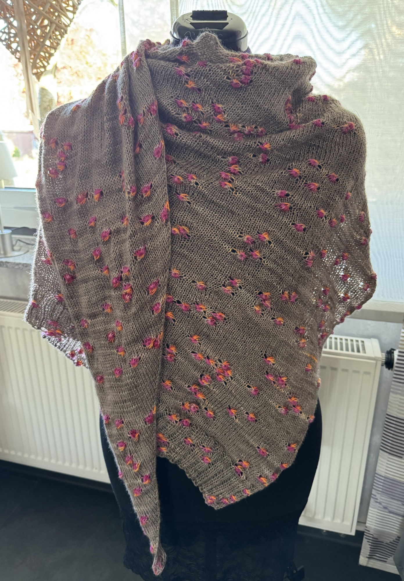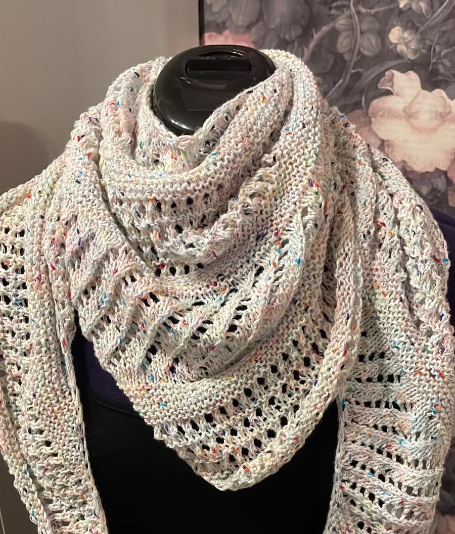 nach der Anleitung von Anja Müller gestrickt. Symmetrische Zunahmen für mehr Breite und komplett umrandet mit Icord. Garn von Herzfasern.