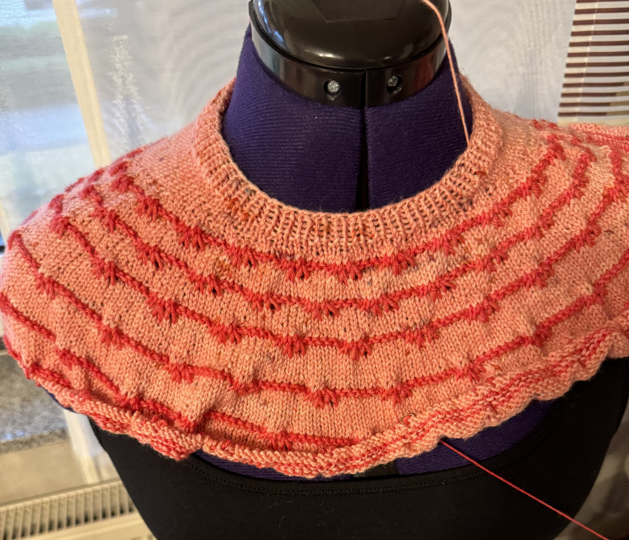 nach der Anleitung von Paula_M. Zweifädig gestrickt aus SMC Merino extra fine und Lana Grossa Silkhair.